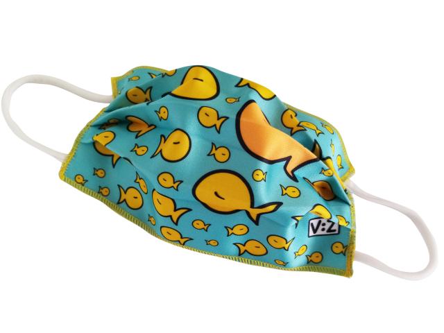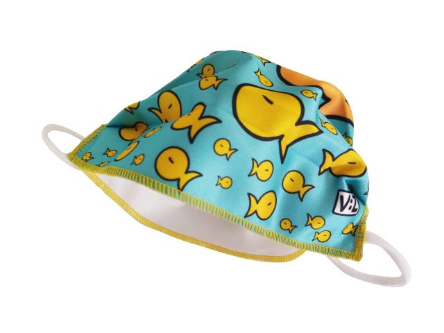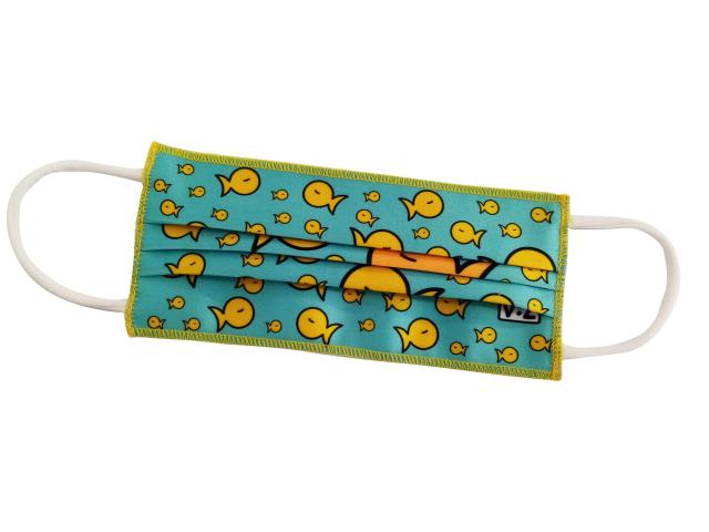 MASCHERINA VERDE ACQUA 'FISH' IN POLIESTERE E COTONE - APRIBILE - NON MEDICA - NON DPI